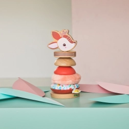 Stella őzike felfedezésre hívja a kis építőket. Ez a rakosgató piramis minőségi fából és puha textil elemekből készül, támogatja a szem–kéz koordinációt, a türelmet és az ügyességet. Az elemek tetszőleges sorrendben rakhatók össze – nincs jó vagy rossz megoldás, így minden összeállítás kicsit más, és ösztönzi a kreativitást.