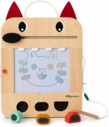 A tábla fából és rétegelt lemezből készült, így strapabíró a mindennapi játékhoz. Ha a rajz nem sikerül, elég használni Ludvig „törlő” orrát, és a felület máris készen áll az új ötletekre. A játékkártyák a hátoldalon tárolhatók, így minden egy helyen marad.