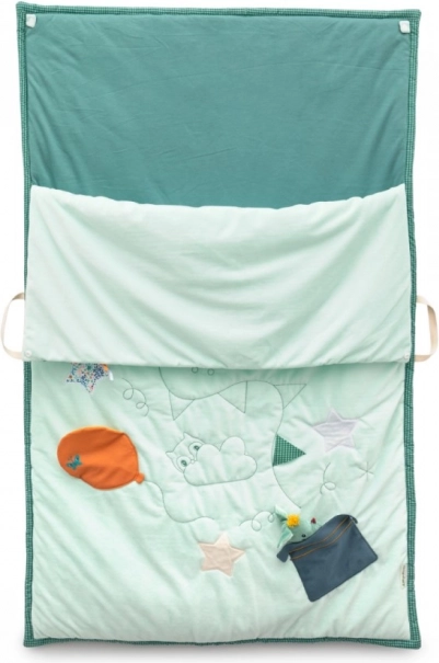 Ez a multifunkciós takaró a Lilliputiens-től ideális társ a babáknak az első napoktól. Játszószőnyegként támogatja az érzékszervi fejlődést – biztonságos környezetet kínál a textúrák felfedezéséhez, a zörgés hallgatásához, a saját tükörkép tükörben való megismeréséhez és a csörgő sárkánnyal való játékhoz.