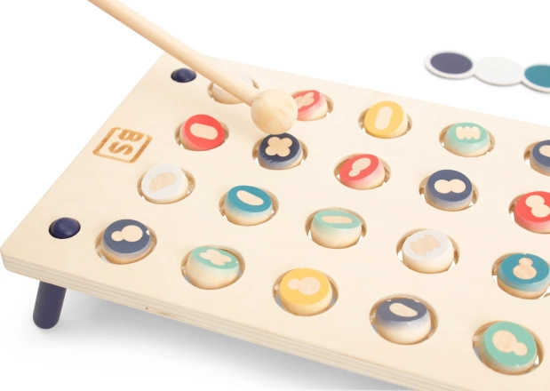 Ez a játék ideális 2-4 játékos számára, 6 éves kortól. A játékosok felváltva dobják a kockát, és megpróbálják a megfelelő formájú faelemet elhelyezni. A játék célja a saját kártya gyors kitöltése és a győztessé válás.