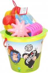 A kedvelt Kisvakond motívum minden gyermeket megörvendeztet, és támogatja a fantáziát a homokozóban, a kertben vagy a strandon. A tágas, 3,5 l-es vödörnek és a praktikus kiegészítőknek köszönhetően a gyerekek könnyedén építenek várakat, alagutakat és formákat.