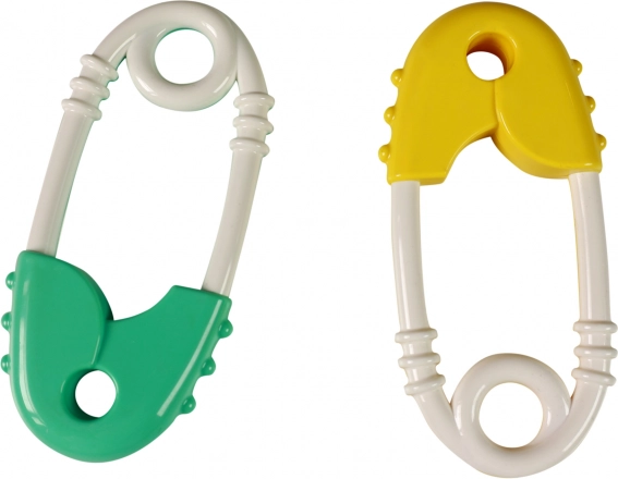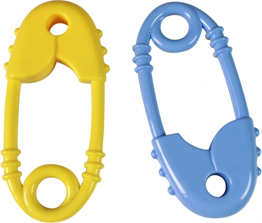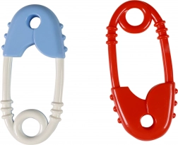 - Motorika és érzékelés fejlesztése: biztosítótű forma, csörgő hang és kontrasztos színek.