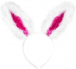 Fehér plüss fülek rózsaszín belsővel, aranyos megjelenéssel és jó tartással. A fejpánt könnyű és kényelmes egész esti viseléshez.