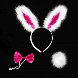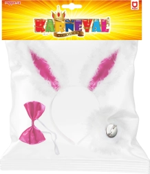 Fejpánt nyuszifülekkel, rózsaszín gumis csokornyakkendő, felcsíptethető farkinca