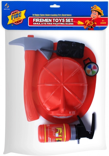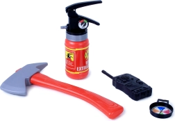 Ez a tűzoltó készlet ideális a hősszerepes gyerekjátékhoz. Tartalmaz egy feltűnő piros sisakot jelvénnyel, egy funkcionális, vízzel tölthető tűzoltó készüléket, strapabíró műanyag fejszét, adóvevőt és iránytűt. A gyerekek így gyakorolhatják a kommunikációt, a koordinációt és fejleszthetik a fantáziájukat biztonságos környezetben.