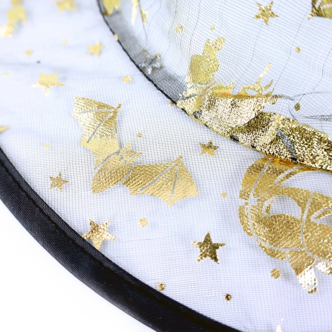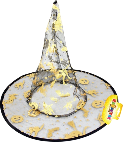 Biztosítson gyermekének felejthetetlen élményt ezzel a varázsló kalappal, mely varázslatos megjelenést kölcsönöz minden Halloween partinak. A kalap könnyű fekete hálóból készült, és arany motívumokkal van díszítve, amelyek ragyognak bármilyen megvilágításban.
