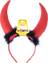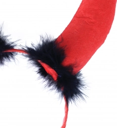 Feltűnő, maxi méretű ördögszarvak szatén fejpánton, filcből, puha tollal díszítve. Remek kiegészítő ördög vagy ördöglány jelmezhez – kényelmes viselés, azonnali hatás és stílusos megjelenés.