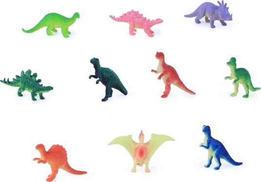 A figurák műanyagból készültek, különféle dinoszaurusz fajtákat tartalmaznak élénk, vonzó színekben, mint például kék, piros és zöld, amelyek támogatják a képzeletet és a tanulást.