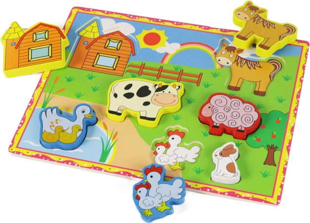 Ez a fa 3D kirakó tanya motívumokkal ideális a legkisebb gyermekek számára, akik szeretnék felfedezni a körülöttük lévő világot. A farm állatainak motívumaival gyermeke rengeteg szórakozásban részesül, miközben fejleszti motoros képességeit.