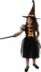 A ruhák gazdag narancssárga elemekkel és metálos csillagokkal vannak díszítve, amelyek első pillantásra magukkal ragadnak. A jelmez egy boszorkány kalappal is kiegészül, ami autentikus megjelenést biztosít.