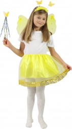 Minden, amire egy kis tündérnek szüksége van: habos, flitteres szoknya, fémes csillogású lepkékkel díszített fejpánt és összeillő varázspálca a látványos megjelenéshez.