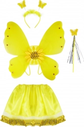 A szárnyak a háton futó pántoknak köszönhetően kényelmesek, a könnyű szoknya nem gátolja a mozgást. A fémes lepkékkel díszített fejpánt és az összeillő pálca teljessé teszi az összhatást, legyen szó farsangról, iskolai műsorról vagy otthoni fantáziajátékról.