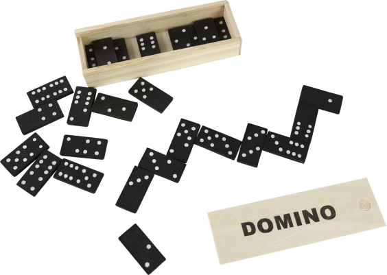 - 24× dominókő, 1× fa doboz, 1× használati útmutató (EN/DE)