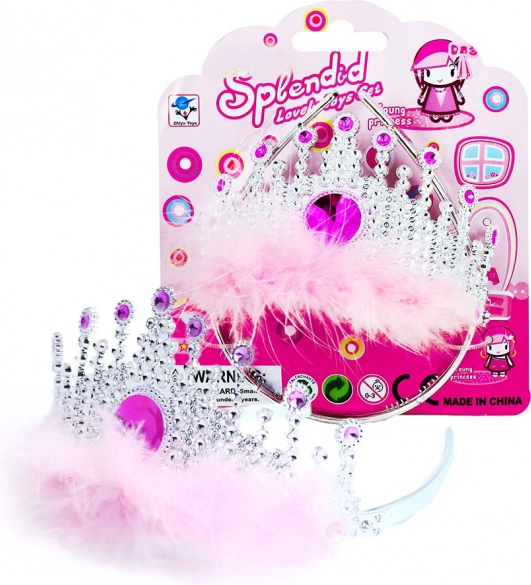 Elegáns tiara minden kicsi hercegnő számára, finom rózsaszín elemekkel és tollakkal díszítve. Remek kiegészítő jelmezekhez, amely minden kislány figyelmét felkelti.