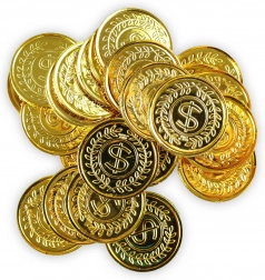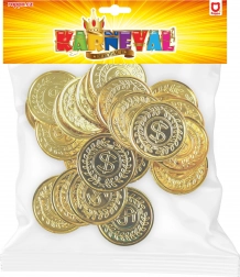 Adjunk gyerekeknek és felnőtteknek egy adag játékos szórakozást ezzel az aranyszínű érmekészlettel, amely látványos, és a műanyag kivitelnek köszönhetően könnyű, biztonságos és tartós. A fényes felület és a domború dollármotívum vonzó megjelenést kölcsönöz játékoknak és dekorációknak.