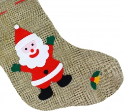 Vidd haza az ünnepek varázsát ezzel a stílusos, természetes jutazsákból készült mikulás-zoknival. A praktikus akasztófül megkönnyíti a felakasztást kandallóra, kilincsre vagy korlátra, a dekoratív nyomat pedig ünnepi hangulatot kölcsönöz a belső térnek. A 38 cm-es hosszúságnak köszönhetően a zokni bőséges mennyiségű édességet, gyümölcsöt és kisebb ajándékot befogad.