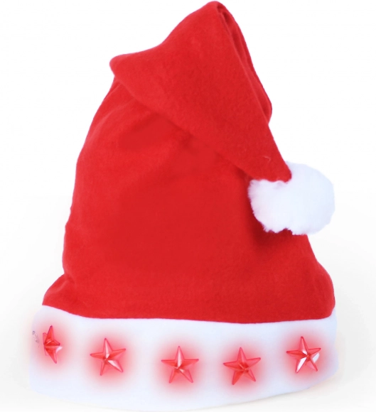 Dobd fel az ünnepi hangulatot ezzel a stílusos, filcből készült karácsonyi sapkával, amelynek elején villogó csillagok vannak. Egy egyszerű gombnyomással aktiválhatod a fényhatásokat – tökéletes választás karácsonyi bulikra, családi összejövetelekre és tematikus fotókhoz. A csomag 2 db LR44 elemet tartalmaz az azonnali használathoz.