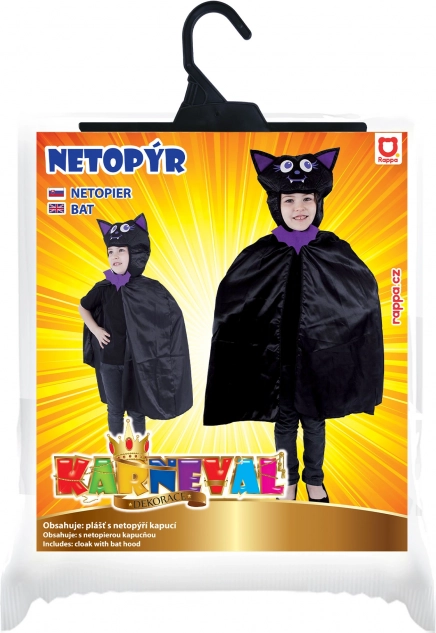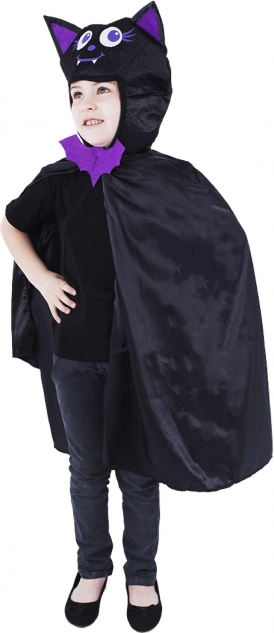 Változtassa gyermekét pillanatok alatt titokzatos denevérré. Ez a fekete–lila kapucnis köpeny kényelmes, könnyű, és egyszerűen felvehető hétköznapi ruhára. Remek választás farsangra, iskolai műsorra és Halloweenre.