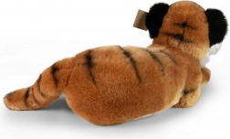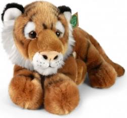 Ez a fekvő plüss tigris a lágyság, a minőség és a természet iránti odafigyelés kombinációját nyújtja. A precíz kézi kidolgozás és a részletgazdag csíkok élethű hatást keltenek, így kedvelt társsá és egyben szép díszítőelemmé válik. A puha és pelyhes, újrahasznosított PET töltetnek köszönhetően a játék nemcsak kellemes tapintású, hanem a bolygót is kíméli.
