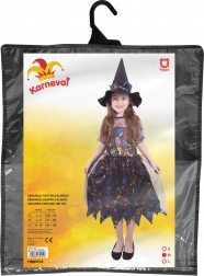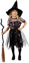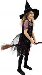 Szerezz örömet a kis boszorkánynak egy tökéletes jelmezzel, amely minden bulin kitűnik. A könnyű és kellemes tapintású, fekete–lila hangolású ruha vidám halloweeni motívumokkal díszített, amelyek játékos és varázslatos megjelenést kölcsönöznek. A szett része az összeillő csúcsos kalap, amely teljessé teszi a klasszikus boszorkányos stílust.