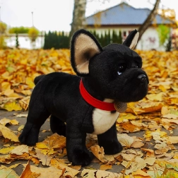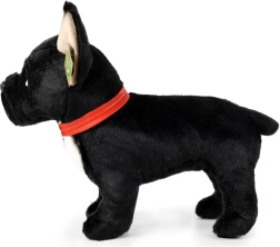 Aranyos és élethű plüss francia bulldog fekete színben, piros nyakörvvel, amely a kutyabarát kicsiket és nagyokat egyaránt elbűvöli. Magas minőségű plüssből készült, és újrahasznosított PET-palackokból származó környezetbarát töltettel van megtöltve. A álló kivitel és a kézi megmunkálás autentikus megjelenést kölcsönöz – ideális alvótárs a gyerekszobába és gyönyörű ajándék is.