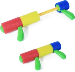 A puha szivacs anyagok lehetővé teszik a víz könnyű felszívását és a célok locsolását. A vízipisztoly színváltozatos, ami még vonzóbbá teszi a játék megjelenését. Az egyszerű pumpáló mechanizmusa miatt kicsi gyerekek számára is könnyen használható.