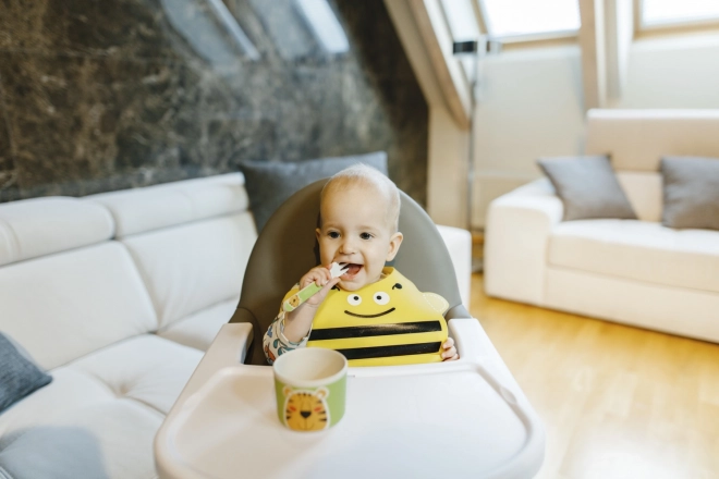 Tökéletes segítő minden etetéshez, a szilikon előke méhecske mintával könnyű és kényelmes kialakítást kínál. A állítható csattal a nyak körül ideális minden gyermek számára.