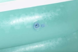 Praktikus és tartós medence elegáns türkiz-fehér színben, ideális a forró nyári napokra a kertben. A puha, felfújható falak kényelmessé teszik a gyerekek számára, és biztonságos a családi szórakozáshoz. Összecsomagolva minimális helyet foglal, így könnyű szállítani és tárolni.