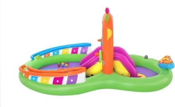 Tartalma: 1 medence, 1 csúszda, 1 dob, 2 felfújható karika, 1 mikrofon, 6 színes labda, 1 javítófolt.