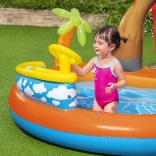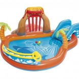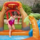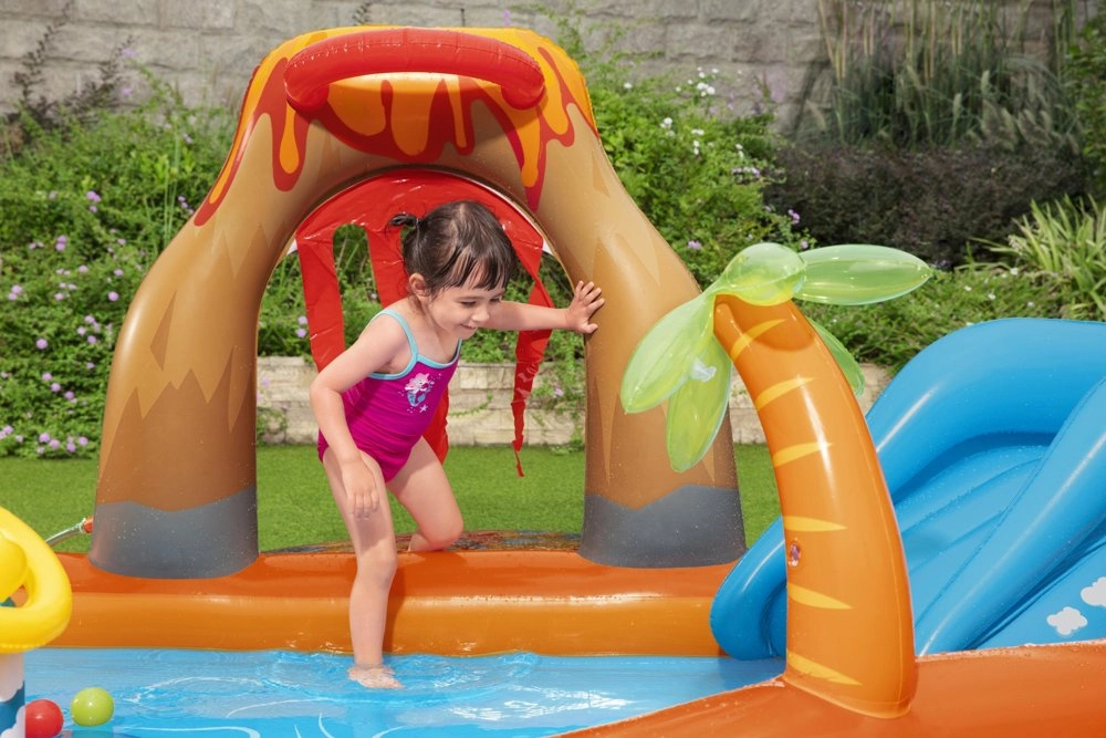 A Bestway Vulkán felfújható vízi játszótér a kertet a nyári szórakozás központjává változtatja. A gyerekek élvezhetik a csúszást a puha felfújható csúszdán, a fröcskölést a vízpermet alatt, valamint a játékot a labdákkal és dobóelemekkel. A sekély pancsolónak köszönhetően a játszóközpont a legkisebbek számára is megfelelő, míg a tartós PVC és a leeresztő szelep megkönnyíti a használatot és a karbantartást.