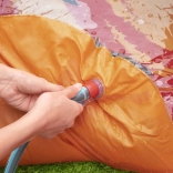 A puha felfújható csúszda és a vulkán-permet minden napot frissítő kalanddá varázsol. Elég csatlakoztatni a kerti tömlőt, és indulhat a móka.
