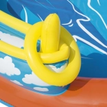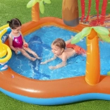 A maximális kényelem érdekében nem hiányzik a levehető pancsoló, a praktikus leeresztő szelep és a csomagban található javítófolt sem. A színes, trópusi dizájn felfedezésre csábít, és támogatja az aktív mozgást és a kreatív játékot.