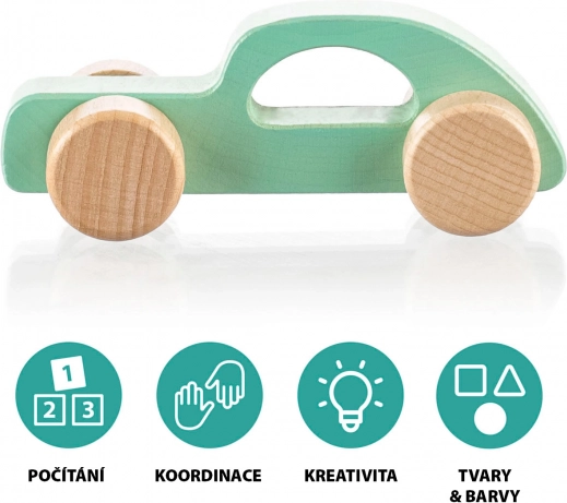 A fa sportautó ideális a 16 hónapos kortól kezdve. Könnyű és kompakt, ami minden kis sofőr szívét megdobogtatja. Minőségi bükkfából és vízbázisú festékekkel készült.