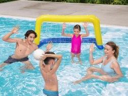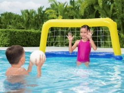 A BESTWAY felfújható kapu sportos szórakozást visz minden medencébe. A minőségi vinilből készült, könnyű és biztonságos kialakítás hosszú élettartamot biztosít, míg a nejlonháló megbízhatóan felfog minden találatot. A biztonsági szelepeknek köszönhetően a kapu gyorsan játékra kész, és ugyanilyen gyorsan el is pakolható.