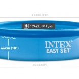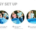 Klasszikus a föld feletti medencék között. Intex Easy Set az egyszerű és gyors összeszereléséről híres a felfújható felső peremnek köszönhetően. Csak fel kell fújni, és a víz emelkedő oszlopa maga felépíti a medencét.