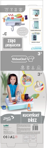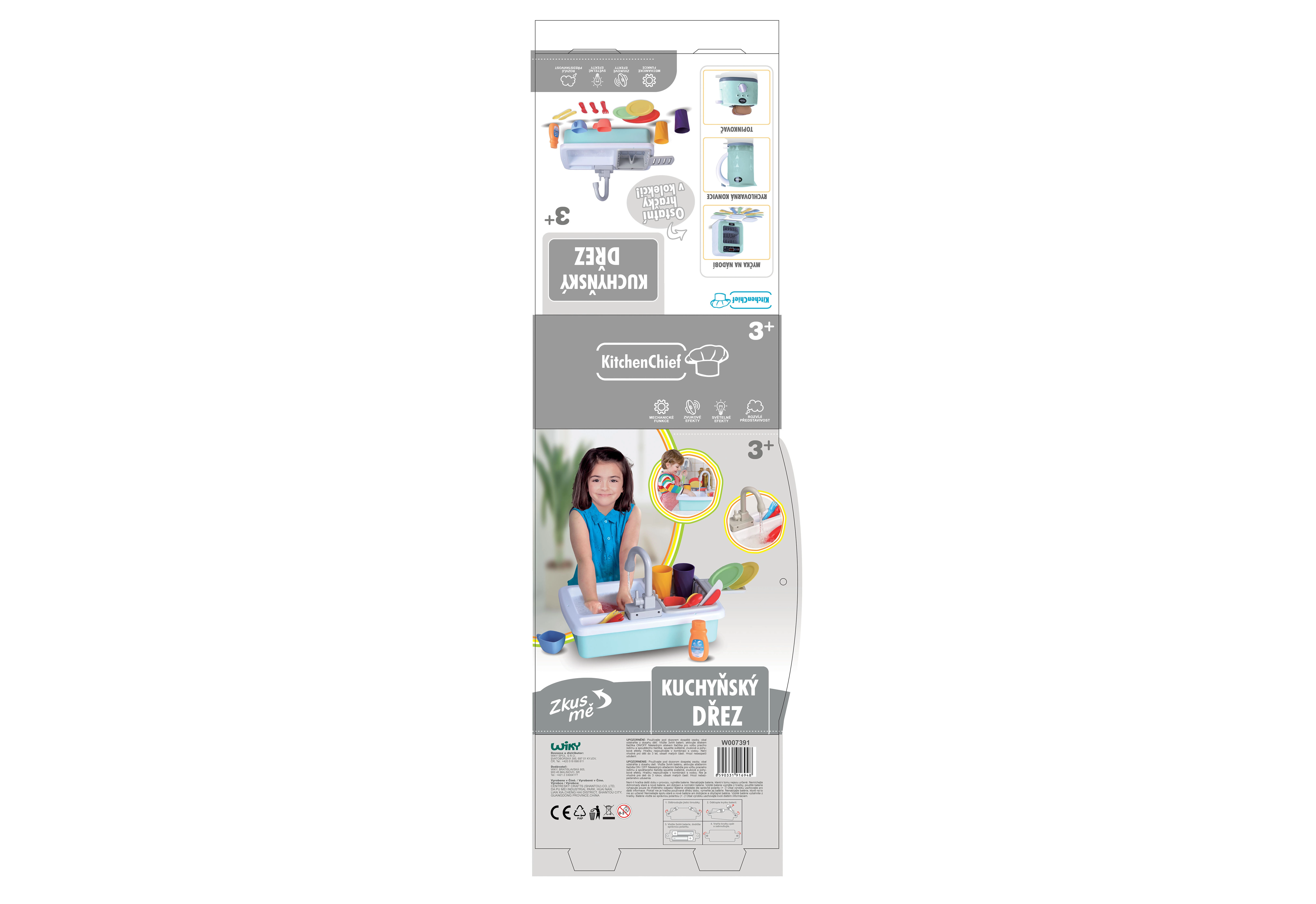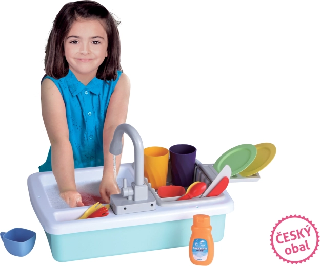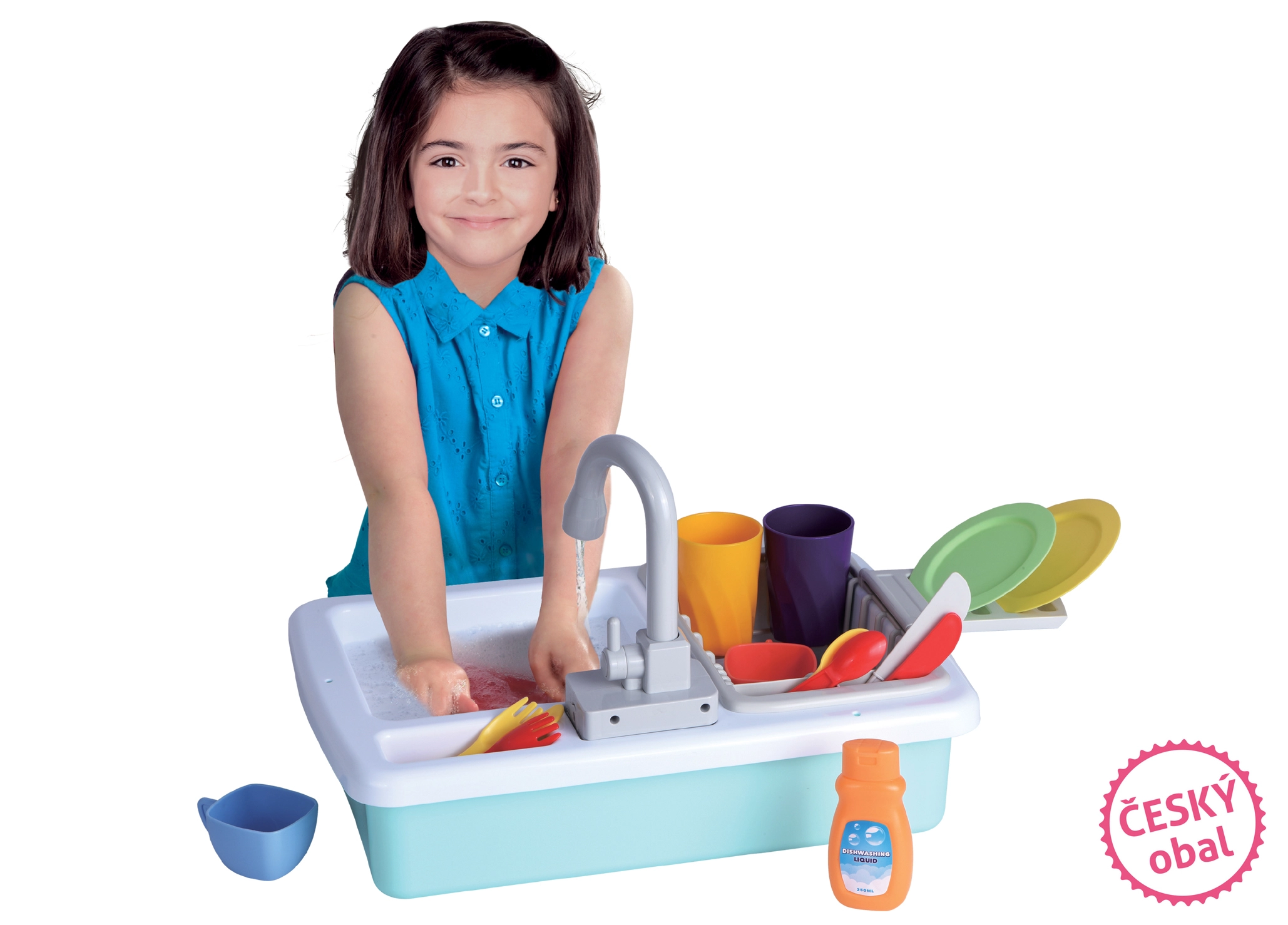 Ez a műanyag konyhai mosogató valósághű élményt nyújt a főzés és takarítás világából. A folyó víz funkciónak köszönhetően a kis szakácsok kipróbálhatják, hogyan kell elmosni az edényeket, miközben fejlesztik a kéz-koordinációt és a felelősségérzetet az otthoni teendőkben. A készlet biztonságos, hosszú játékra lett tervezve.