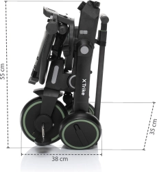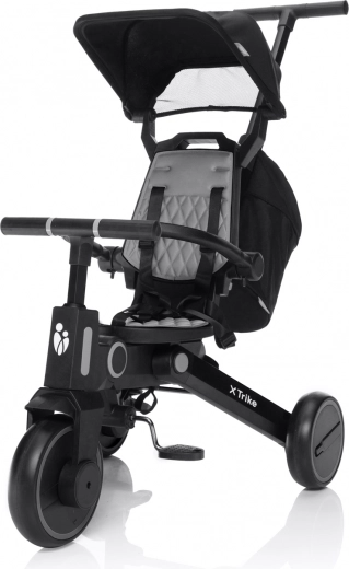 Az X Trike modell kiemelkedik a gyors, kompakt összehajtással, így elfér az autó csomagtartójában vagy egy kis előszobában is. A teljes felszereltségnek köszönhetően, beleértve a napellenzőt, a fellépő pedálokat, a hátsó kerekeken lévő féket és a praktikus táskát, készen áll a mindennapi kirándulásokra és a hosszabb sétákra.
