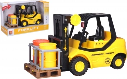 A sárga-fekete targonca tökéletes kiegészítő minden gyermek játékgyűjteményébe. Ez a modell ügyes sofőrök számára készült, akik értékelik a mozgatható előrészt, amely alkalmas a raklapok emelésére.