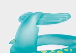 Az INTEX bálna alakú felfújható medencéje ideális választás a nyári kerti mókához. A farokban integrált szórófej/zuhany a szokásos kerti locsolócsőhöz csatlakoztatva kellemes vízsugarat biztosít, amely egyszerre hűsít és szórakoztat. A praktikus leeresztő szelep megkönnyíti a víz leengedését a használat végén.