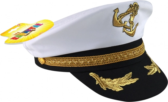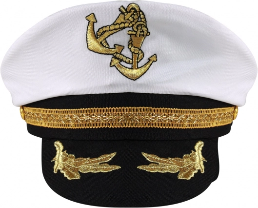 Stílusos kapitánysapka felnőtteknek, amely minden öltözéknek tengeri és kalandos hangulatot kölcsönöz. Fehér korpusszal, fekete napellenzővel arany hímzéssel és elülső horgonyos jelvénnyel – ideális jelmezekhez, tematikus bulikhoz és tengeri témájú eseményekhez.
