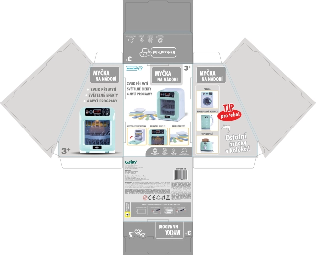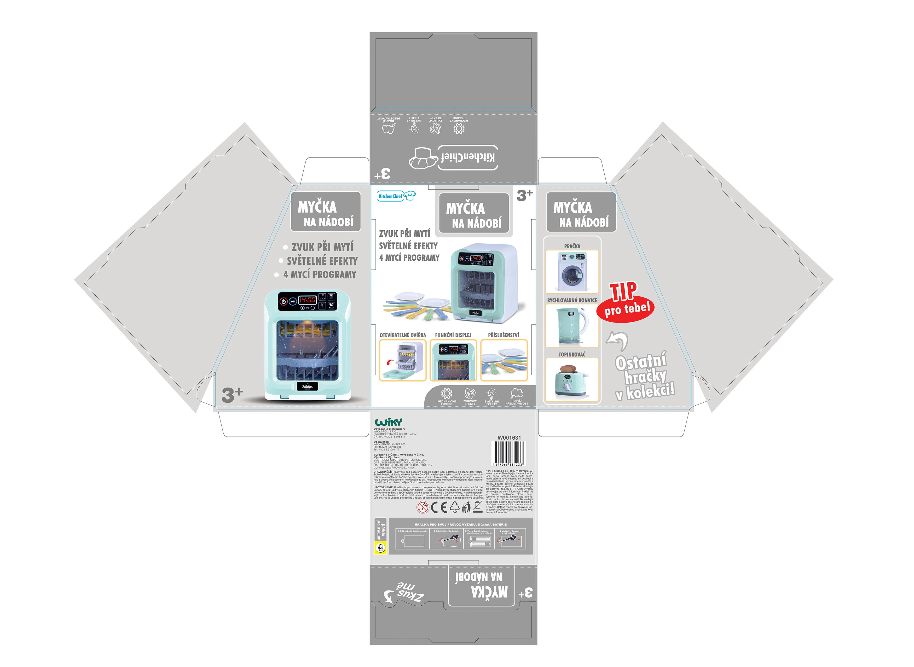 Válassz a 4 mosogatási program közül, vagy állíts be saját időt igény szerint. A mosogatógép a dobozból kivéve azonnal használatra kész – 2× AAA elem a csomagban. Tökéletes ajándék, amely szórakoztat és rendre tanít a kis konyhában.