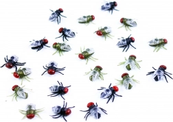 Ezek a kis gumiból készült legyek tökéletes dekorációt nyújtanak a halloweeni bulidhoz, és rémisztő hangulatot varázsolnak.
