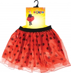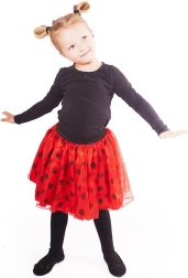 Változtassa kislányát egy pillanat alatt vidám katicává! A több rétegű, lebegős szoknya finom tüllből kényelmes, szépen tartja a formáját, és a rugalmas deréknak köszönhetően könnyen felvehető. A piros szín fekete pöttyökkel már első pillantásra megragadja a tekintetet, és bármely jelmeznek varázst kölcsönöz.