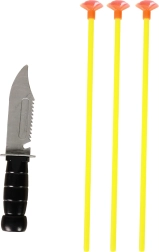 A csomag része egy műanyag kés tematikus játékokhoz, valamint egy tegez az áttekinthető tároláshoz és a könnyű szállításhoz.