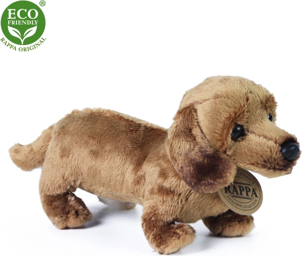 A 19 cm magas, aranyos plüss tacskó a kutyák kis és nagy rajongóinak egyaránt örömet szerez. A játék minőségi, puha plüssből készült, és a RAPPA exkluzív kollekciójába tartozik. A visszaforgatott PET palackokból készült töltőanyag ECO‑FRIENDLY, biztonságos és tapintásra pihe-puha. 3 éves kortól ajánlott.