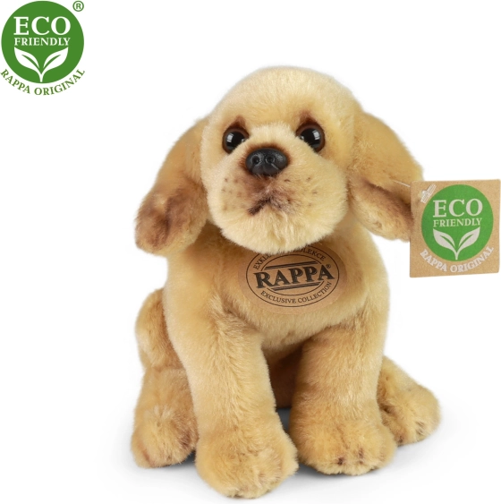 Ez a 20 cm magas, aranyos plüss labrador örömet szerez kicsiknek és nagyoknak, akik szeretik az állatokat. A RAPPA exkluzív kollekciójának része, töltete újrahasznosított PET palackokból készült – biztonságos, puha tapintású és környezetbarát.