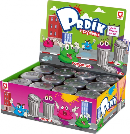 A szórakoztató pukiáló massza kukában ideális móka barátokkal és családdal. Ujjal megnyomva ál-pukizó hangokat ad ki, amelyek garantáltan megnevettetnek. Válassz egy kukát, hagyd, hogy meglepjen a massza színe, és élvezd a rengeteg szórakozást bárhol és bármikor.