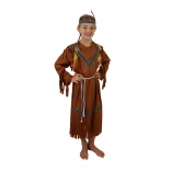 Változtasd a kis parádést bátor indián lánnyá! Ez a barna jelmez dekoratív mintákkal, díszrojtokkal és színes tollas fejdísszel szépen áll, és minden farsangon, tematikus bulin vagy otthoni játék közben is feltűnő.