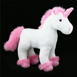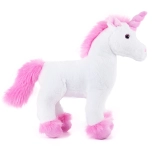Aranyos fehér unikornis rózsaszín sörénnyel és csillogó szarvval, 32 cm-es méretben, amely örömet szerez kicsiknek és nagyoknak, akik szeretik az állatokat. Magas minőségű, puha plüssből készült, és a kézi megmunkálásnak köszönhetően rendkívül bársonyos tapintású és részletgazdag. Remek ajándék újszülött kortól, és dísznek is ideális a gyerekszobába.