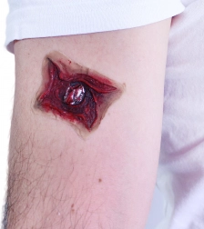 Élvezd a felejthetetlen éjszakát öntapadós sebekkel, amelyek kosztümödnek valósághű és ijesztő kinézetet kölcsönöznek.
